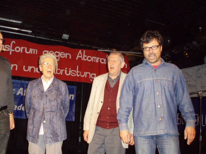 Neben Diether Dehm (Gesang) und Michael Letz am Flügel fanden sich auf der Martinee Einhart Klucke als Kabarettist, Ralph-M. Luedtke mit einer Rezitation, Peter Strutynski im Gespräch mit Pionieren der Ostermarschbewegung: Ellen Weber (Gersfeld), Andreas Buro (Grävenwiesbach), Horst Bethge (Hamburg), Willi Hoffmeister (Dortmund) und Horst Trapp (Frankfurt) ein.
